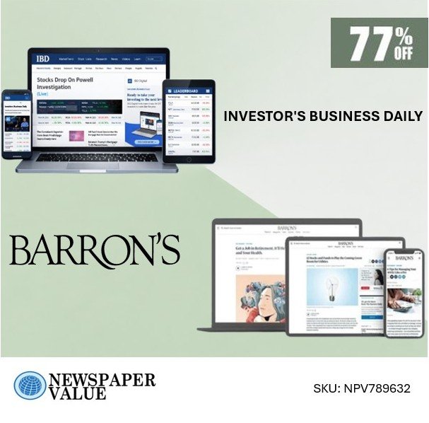 Stay ahead of the market with this premium digital bundle that combines Investor’s Business Daily (IBD) and Barron’s, two of the most trusted names in stock market news, investing strategies, and financial analysis. This subscription is ideal for investors who want reliable insights, stronger decision-making tools, and smarter ways to follow market trends.